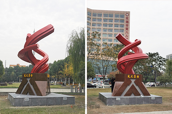 華訊標(biāo)牌為無錫市第八人名醫(yī)院制作安裝了一批景觀雕塑,景觀雕塑是雕塑藝術(shù)的一種,它們主要使用在園林景觀環(huán)境中或者城市景觀等室外場(chǎng)所,區(qū)別于擺件類的雕塑,主要形體是較大的,在造型上更能夠分為寫實(shí)雕塑和抽象雕塑。隨著當(dāng)今社會(huì)不斷的發(fā)展,雕塑在城市中的應(yīng)用也越來越廣泛,成為了城市景觀環(huán)境中不可缺少的存在,而優(yōu)秀的景觀雕塑具備著成為城市標(biāo)志的可能,已經(jīng)成為了城市規(guī)劃的重要內(nèi)容之一。景觀雕塑可以分為紀(jì)念性、主題性、裝飾性、陳列性四種類型,不同類型所發(fā)揮的作用也是不同的。一起來看看華訊安裝師傅現(xiàn)場(chǎng)拍回的圖片吧。
